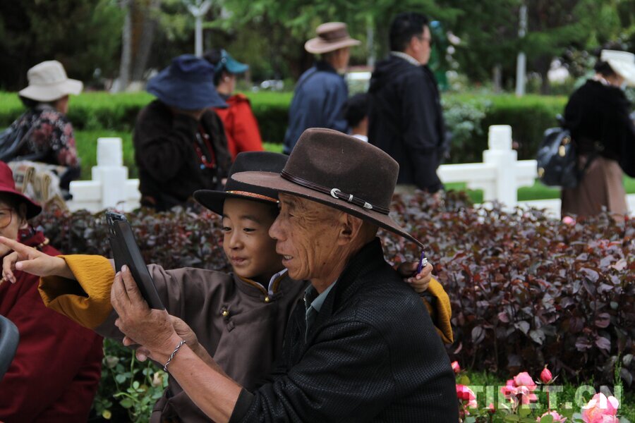 On August 24, 2025, during the Shoton Festival, a Tibetan grandfather and his grandson spent the festive day at Norbu Lingka in Lhasa.